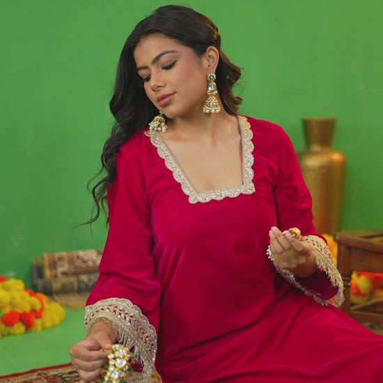 Gulabi Noor – Magenta Kurta Set with Teal Dupatta